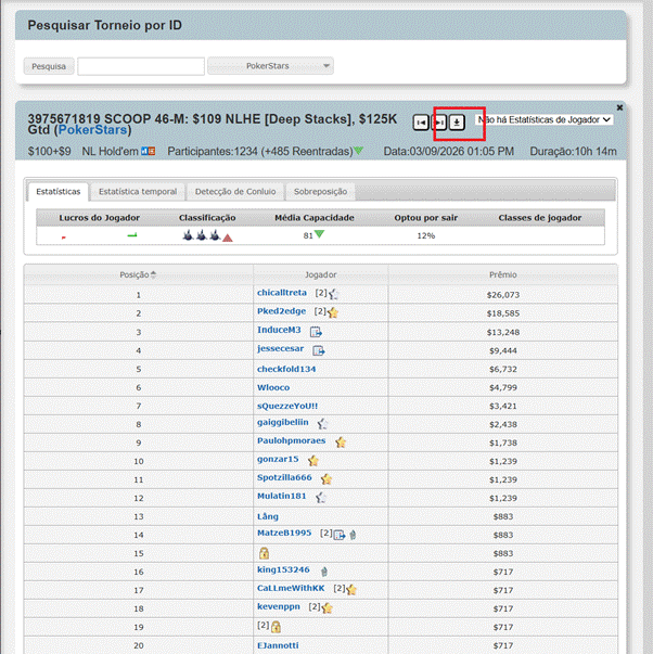 Via SharkScope: You can access the website by clicking the magnifying glass icon. Check Replay is synced with the service, and the page for the desired tournament will automatically open in a new window. All you have to do is click Download and transfer the .json file to the replayer.