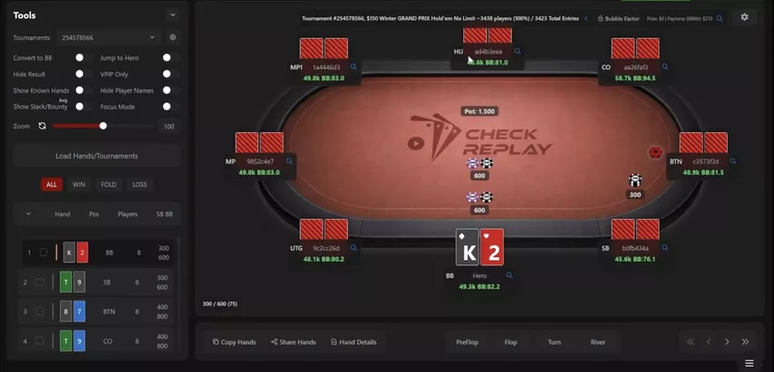 Check Replay lets you download hands as well. GGPoker and PokerStars are currently supported. In addition to Hold'em, Omaha and PLO6 are also available.