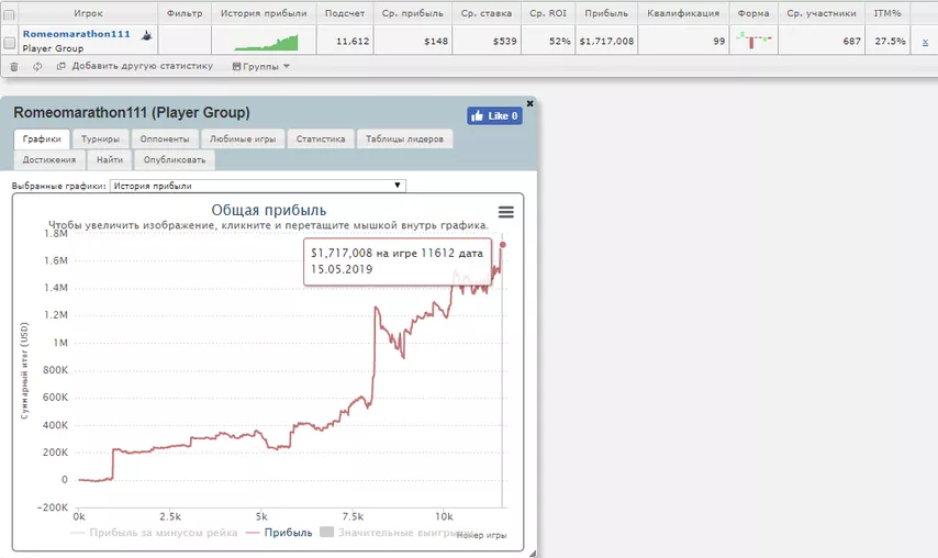 By any sample, the EV there should also be low. Romeopro couldn't have been unaware of its EV. We're not going to seriously consider the fund owner's inability to upload hands to a tracker and open a chart tab, are we? And he once wrote about win rates on GipsyTeam many years ago... Which means: