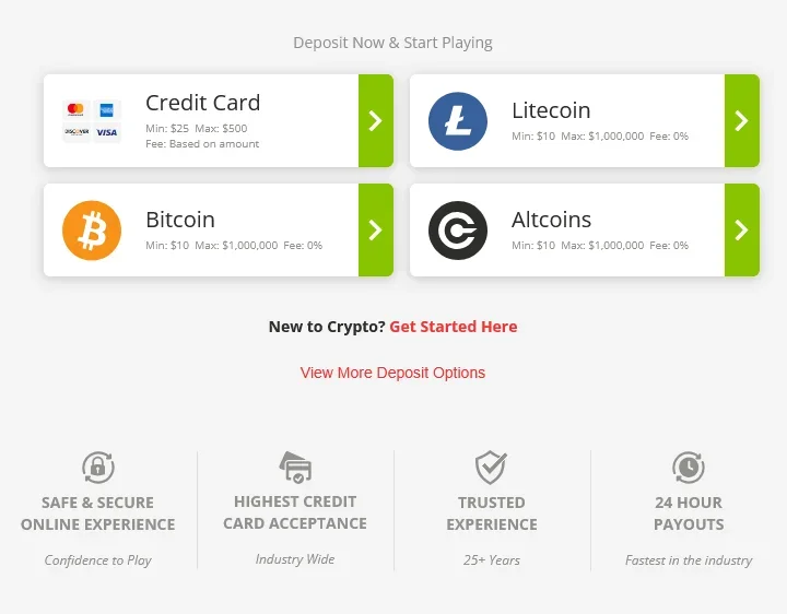 BetOnline Casino supports a wide variety of payment methods, including crypto, credit cards, and bank transfers. Here’s a breakdown of the main deposit and withdrawal methods available at BetOnline Casino, including minimum deposit amounts and estimated payout speeds. Whether you prefer using cryptocurrency, traditional banking, or checks, the platform offers flexible options to suit different player preferences: