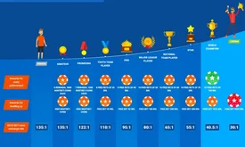 There are nine tiers in total. The higher the tier, the better the exchange rate when converting coins to money. There’s no time limit for completing the requirements for each level. Points are awarded based on losing bets.