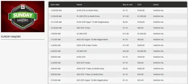 - Sunday majors such as the $109 Main Event with a $150,000 guaranteed prize pool