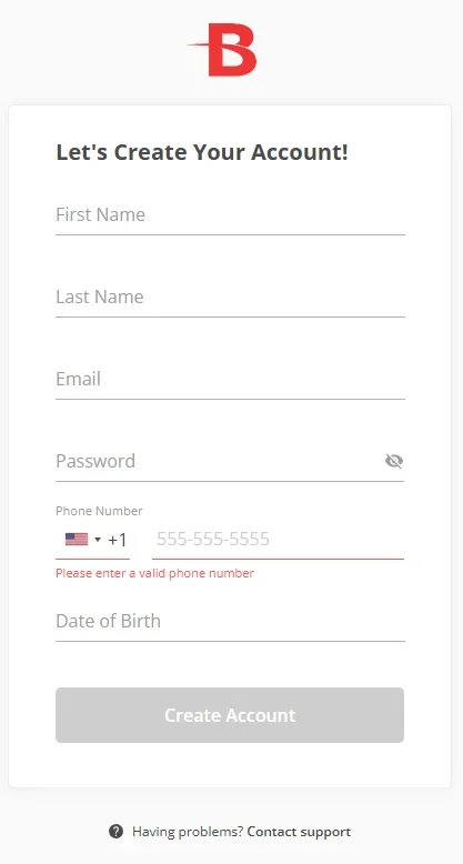Once every field is completed correctly, the Create Account button becomes available—click it to finish registration.