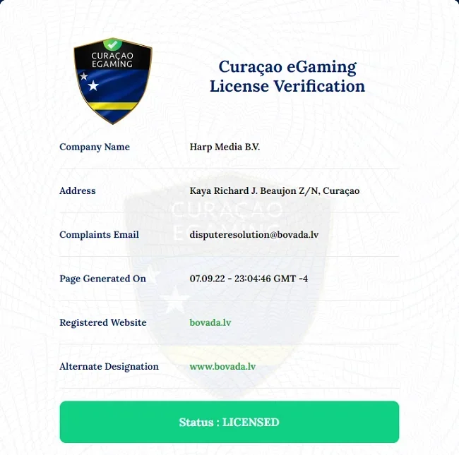 Bovada is registered in Curaçao and is a legitimate online gaming platform. It has strong privacy features, adequate financial protections to keep players safe, and positive user reviews.