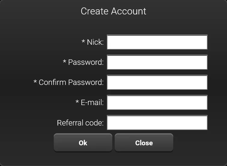 You also need to choose the lobby language. The options are English, Spanish, and Russian. There is no need to confirm your e-mail. As of 2025, the promo or referral code doesn’t provide any extra value because the room runs very few bonuses/promotions.