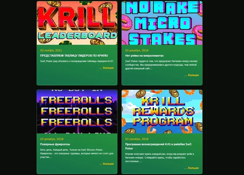 SwCPoker boasts of some of the lowest rake rates in the industry. The standard online rule applies: if the flop is not dealt, no rake is taken. The table below shows rake in chips (µBTC).