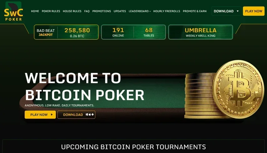 SwC Poker is an independent operator and does not belong to any poker network. The official website uses a .club domain.