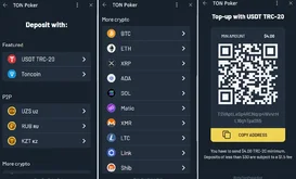 To deposit to your TON Poker account, you’ll need to have cryptocurrency. USDT and Toncoin are the featured coins for real money deposits.
