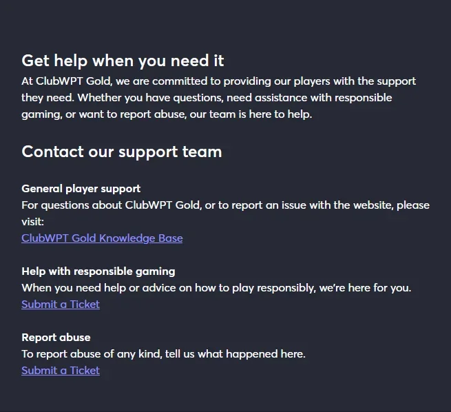 Players have reported generally positive interactions with WPT Gold support. Notably, WPT Gold’s team took feedback seriously regarding the rake and multi-tabling, as mentioned earlier, which shows a degree of attentiveness to the player community that is refreshing. Customer service performance is expected to improve further as they refine the platform.